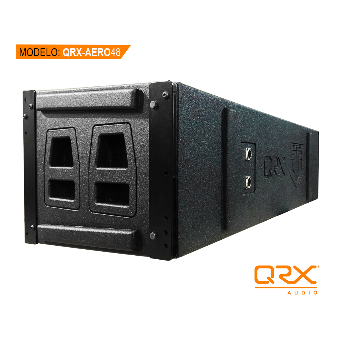 Rompe las reglas y distínguete con un equipo de calidad QRX Audio®, descubre las ventajas en su construcción y aprovecha la asesoría en configuración y manejo de nuestros sistemas de audio. Haz tu pedido, somos una empresa seria y enviamos a toda la República. * Diseñados para usar transductores de calidad premium. * Construcción en Triplay importado de primera 15mm en medios y 18mm en graves. * Placa metálica de mayor grosor pintada con pintura electrostatica para “heavy duty” / trabajo pesado. * Acabado de Polyurea plástica de alto-impacto Superflexx® * Conectores Neutrik originales * NO texturizado, NO resina, NO duratex, NO enfibrado, NO pintura en spray, NO conectores chinos. *Guias de montaje para componentes italianos 18Sound. No aceptes imitaciones QRX AUDIO® es una marca registrada en el IMPI.