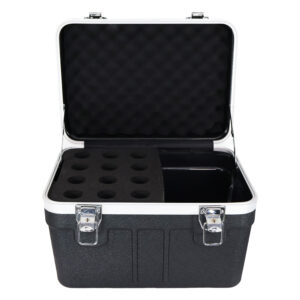 Mantén tus micrófonos siempre protegidos y organizados. Espacios para 12 unidades, con interior seguro que evita golpes y daños.